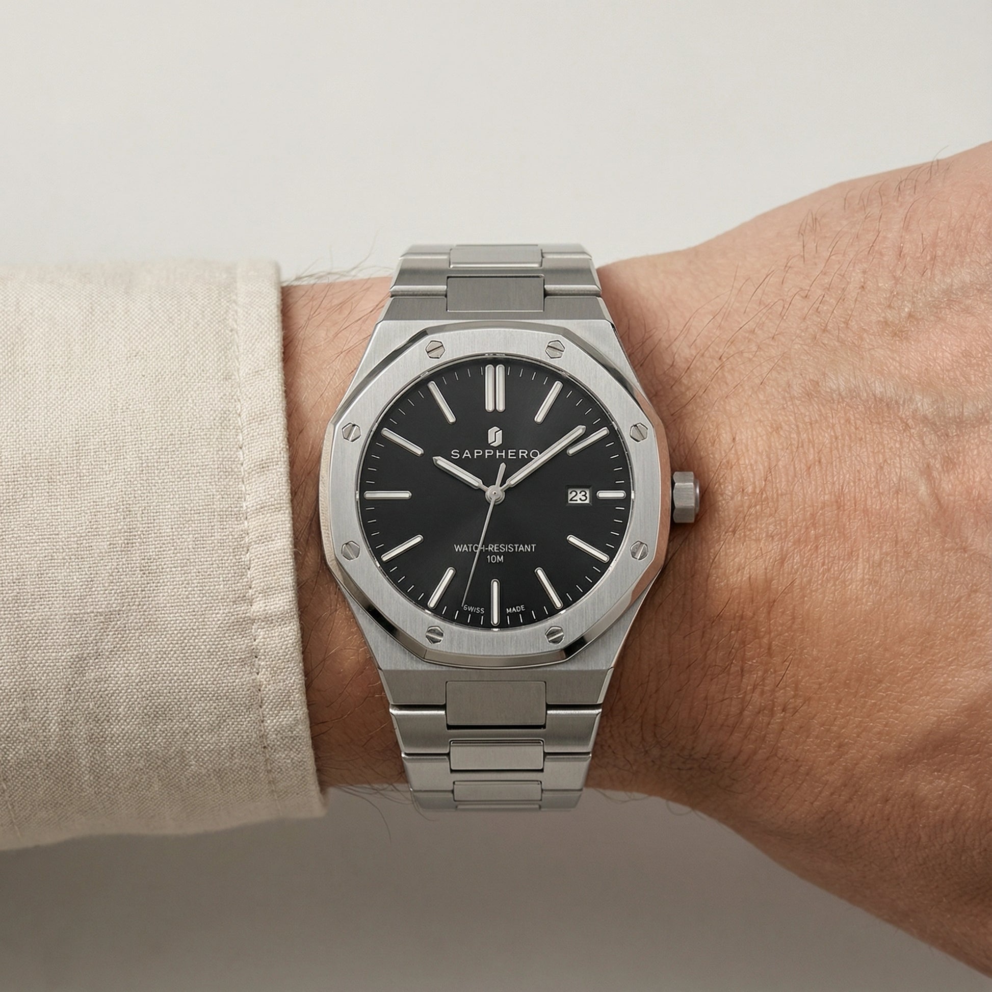A refined timepiece that speaks to quiet confidence. Designed for the gentleman who values precision and polish, this watch delivers sophisticated functionality wrapped in timeless design — from morning meetings to evening occasions.